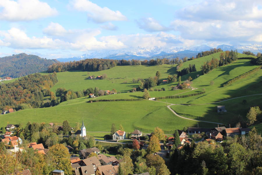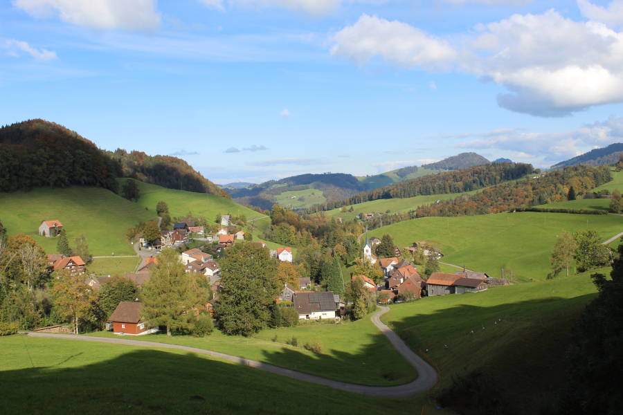Das Dorf liegt eingebettet in einem Seitental der Thur.